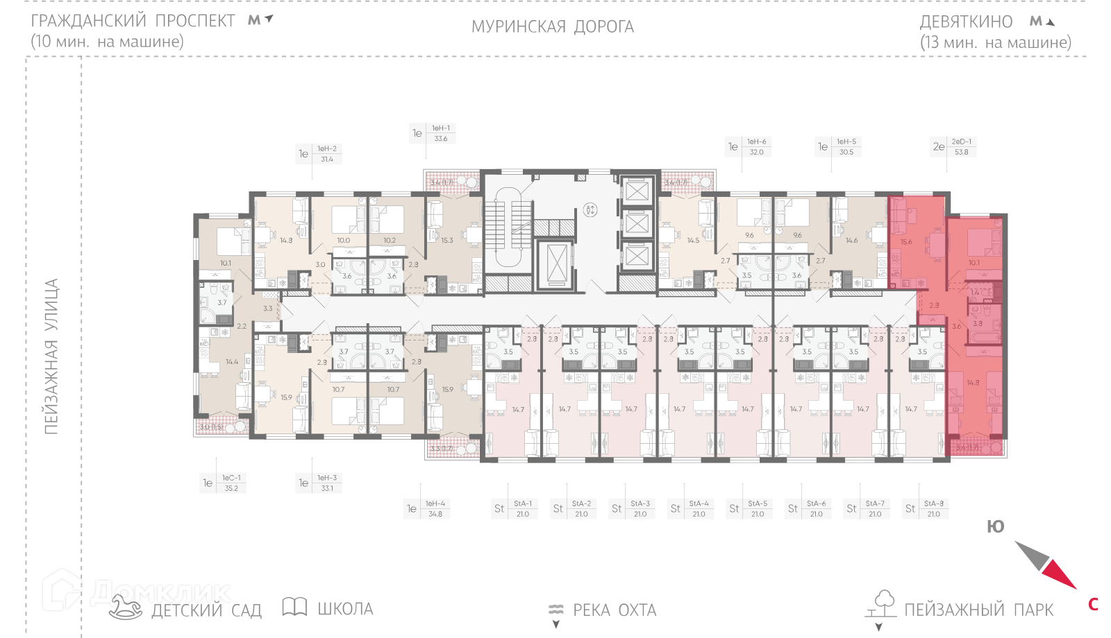Квартира расположена на 13-м этаже 23-этажного дома.