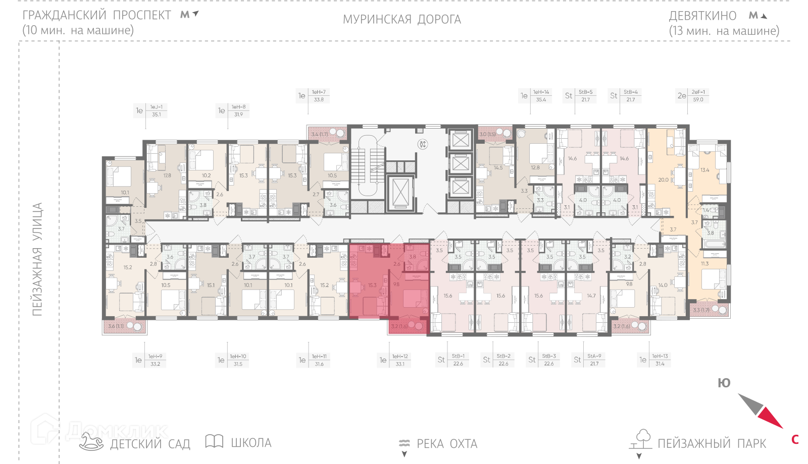 Квартира расположена на 17-м этаже 23-этажного дома.