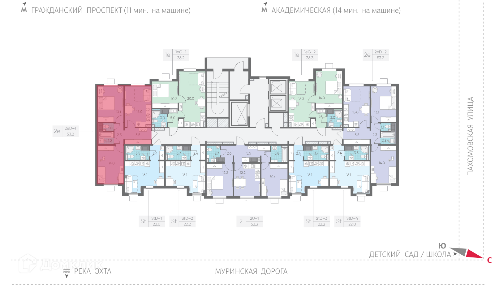 - Общая площадь: 53.2 м²