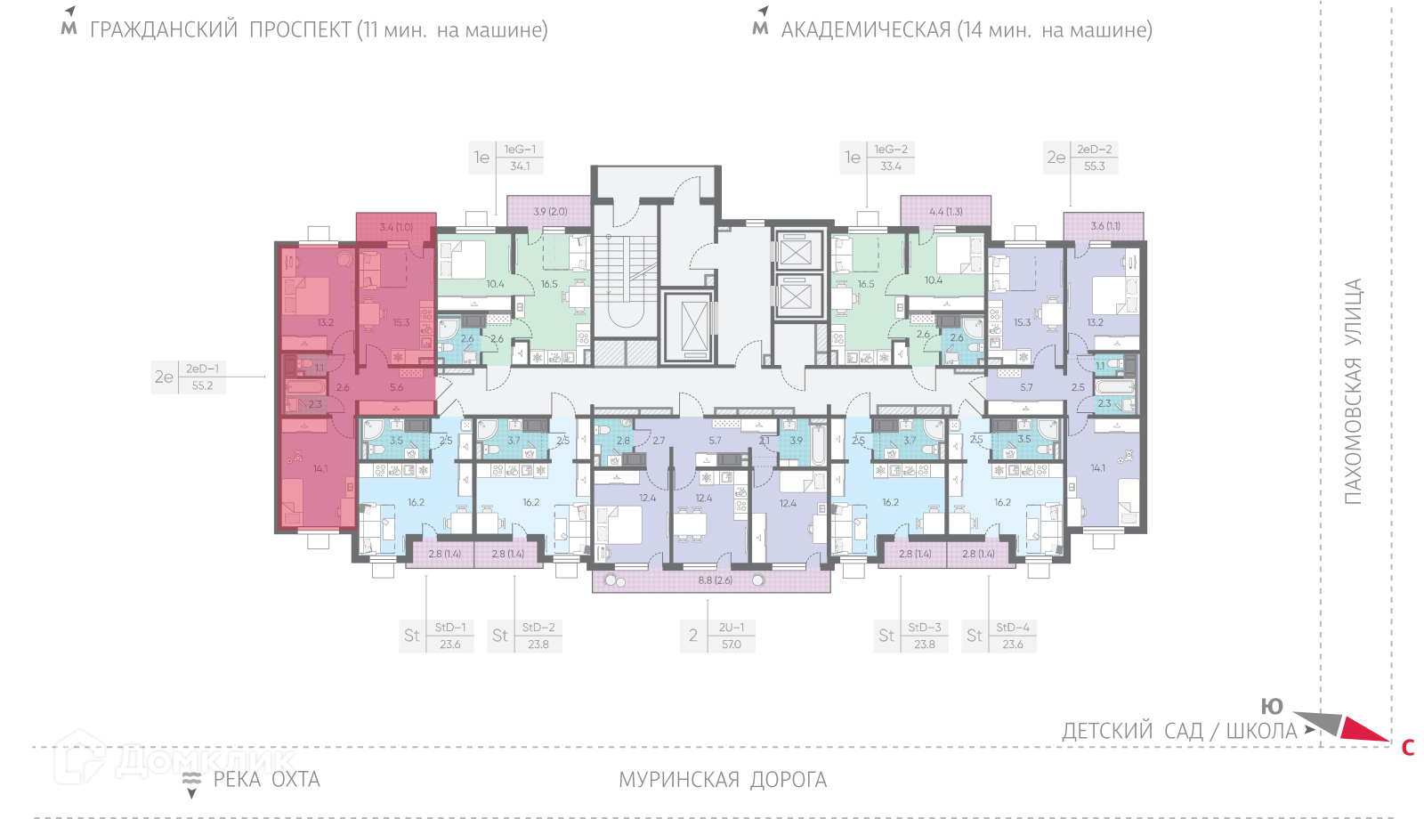 - Общая площадь: 55.2 м²
