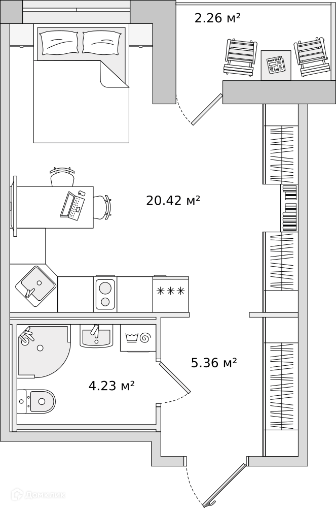 • Площадь - 29.9 м²
