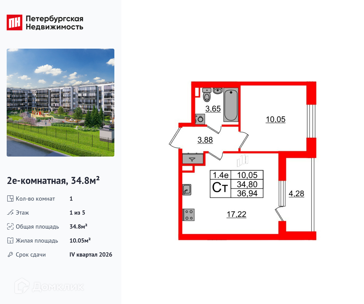 В продаже 1-комнатная квартира в востребованном жилом комплексе "ЖК Парадный ансамбль" 🏢