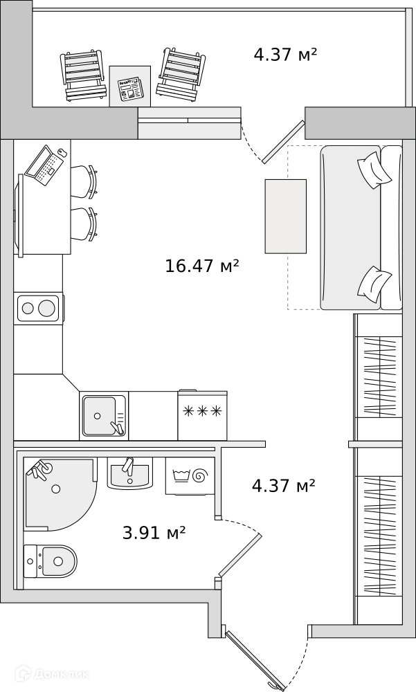 ✅ Кухня: 0 м² — место для кулинарных шедевров.