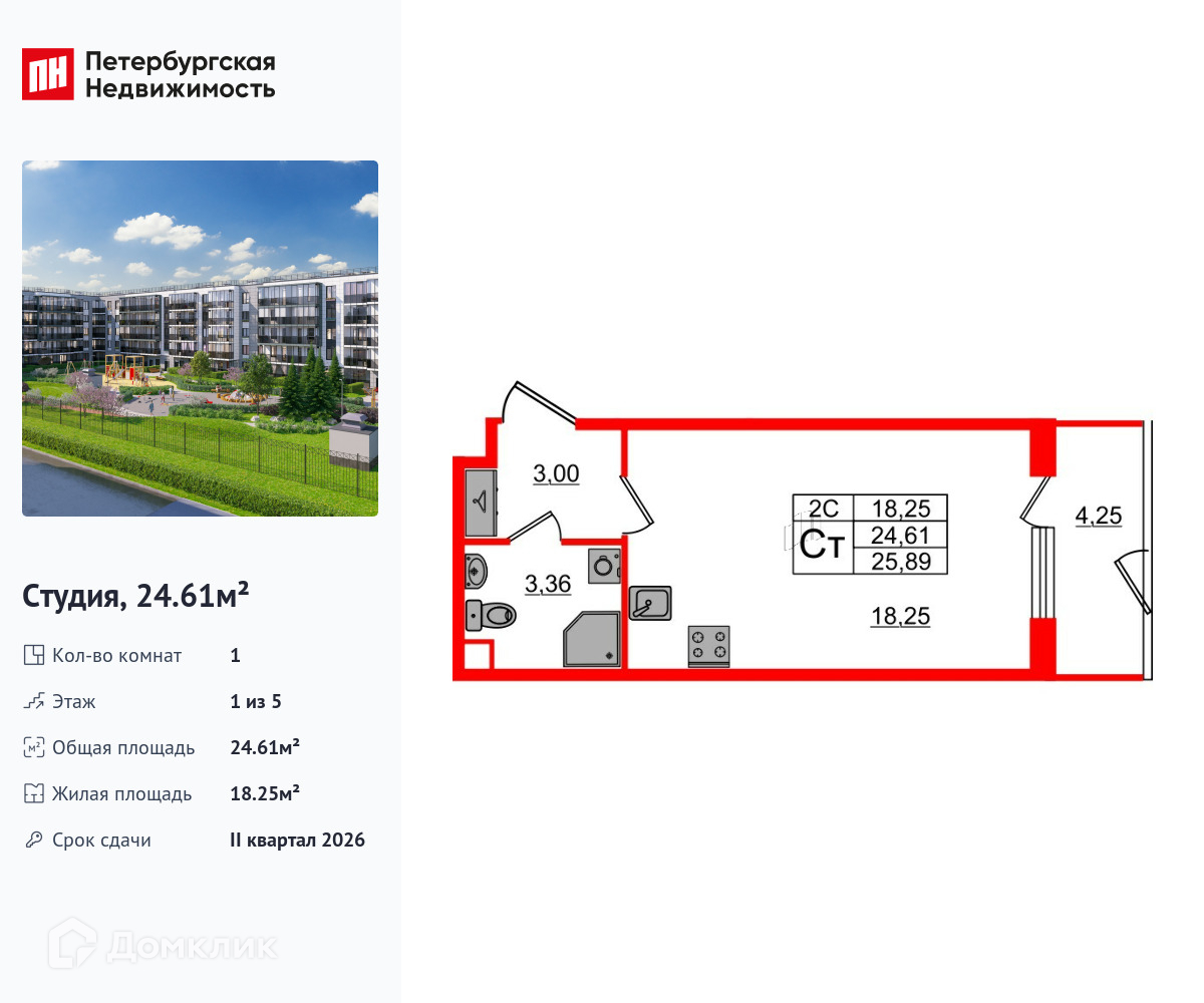 Продается Студия в новом жилом комплексе "ЖК Парадный ансамбль" 🏢