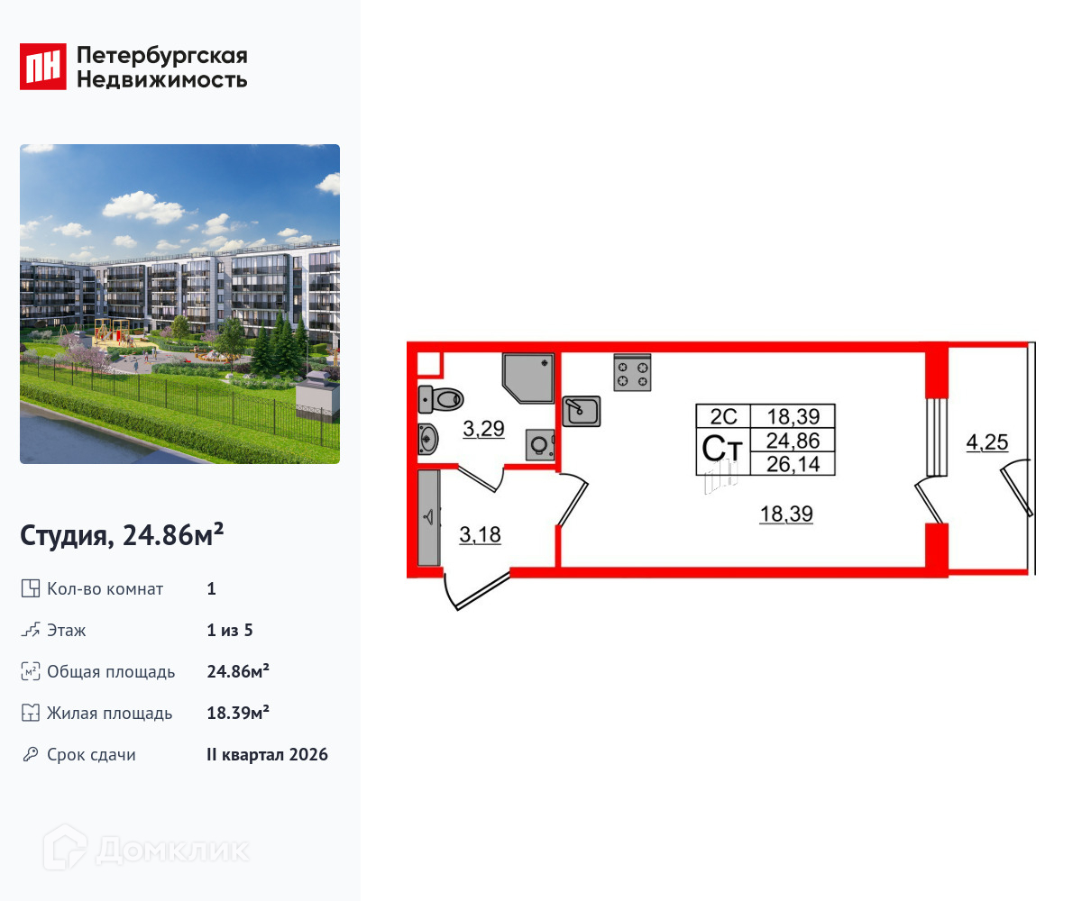 Предлагается Студия в современном жилом комплексе "ЖК Парадный ансамбль" 🏢