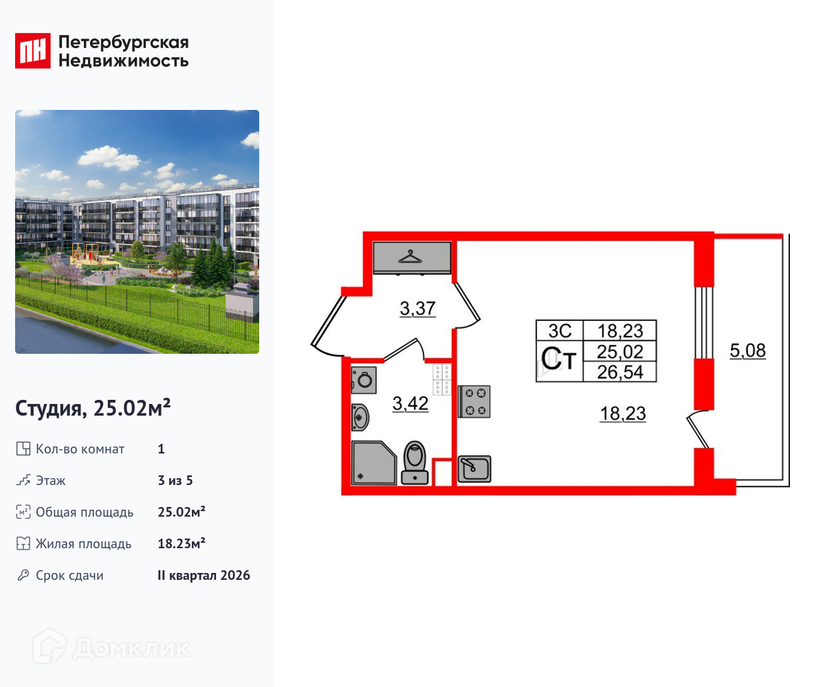 Продается Студия в современном жилом комплексе "ЖК Парадный ансамбль" 🏢