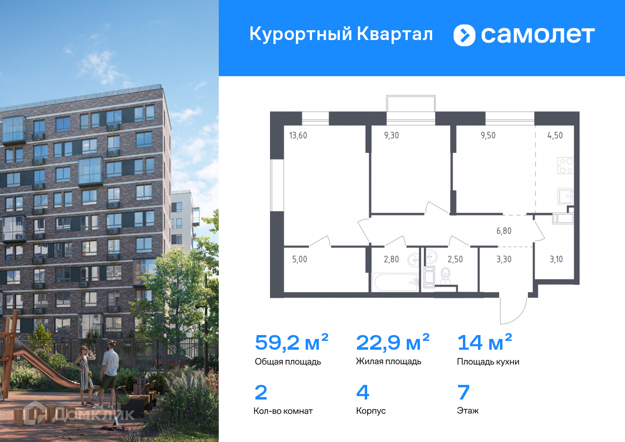 • Площадь - 59.2 м²