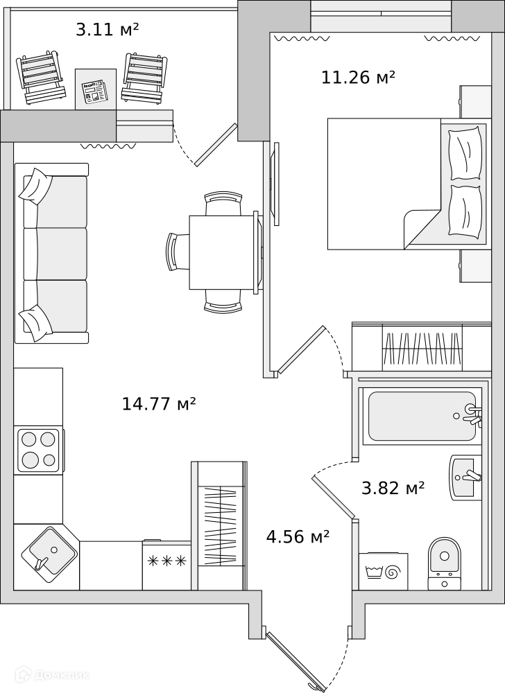 ✅ Кухня: 0 м² — идеальна для семейных ужинов.
