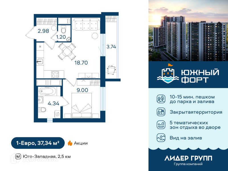 Доступна к покупке 1-комнатная квартира в современном жилом комплексе "ЖК Южный форт" 🏢