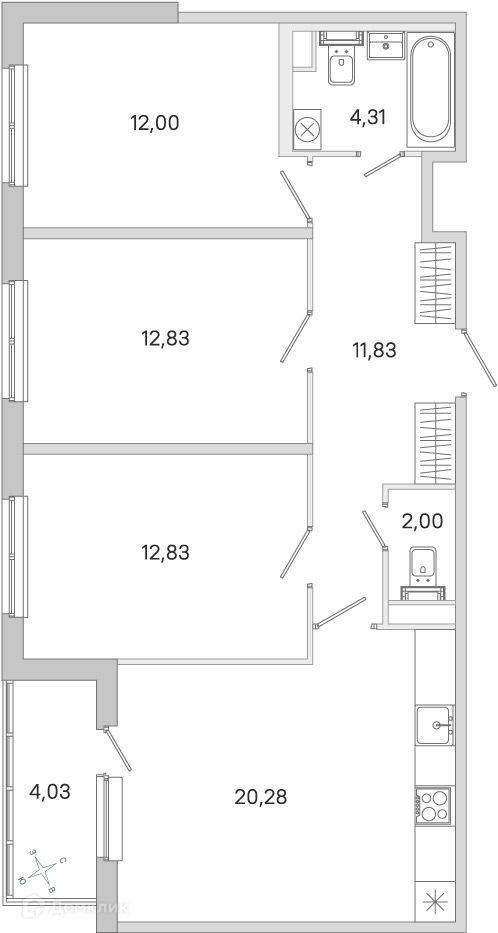 ✅ Кухня: 20.28 м² — идеальна для семейных ужинов.