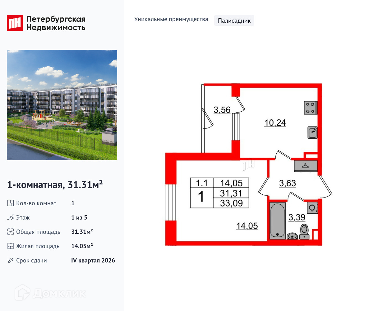 Продается 1-комнатная квартира в современном жилом комплексе "ЖК Парадный ансамбль" 🏢