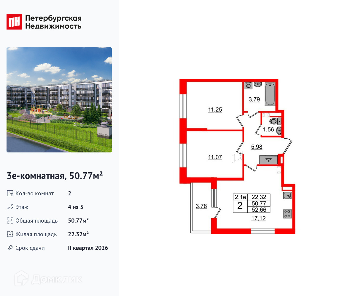 Доступна к покупке 2-комнатная квартира в новом жилом комплексе "ЖК Парадный ансамбль" 🏢