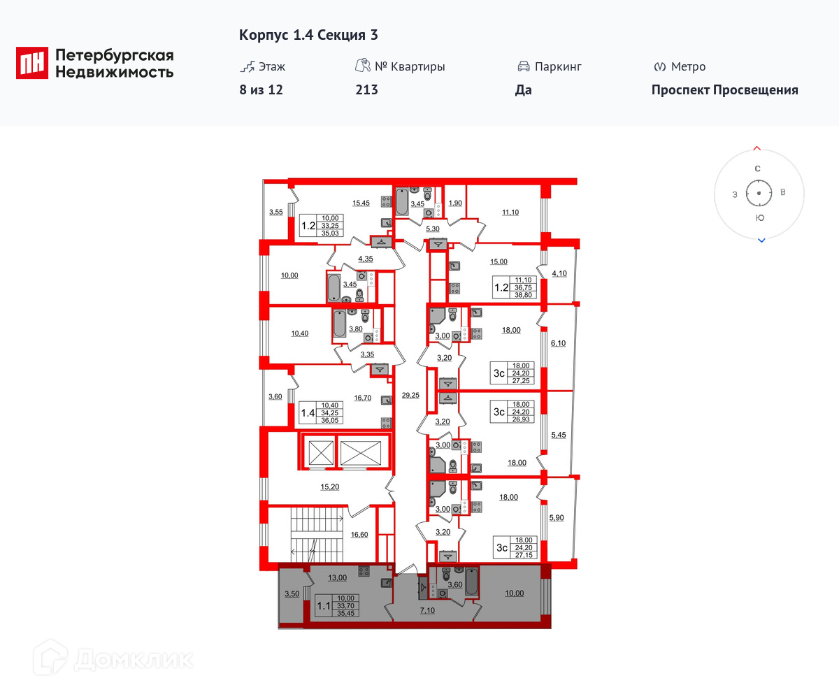 Площади квартир