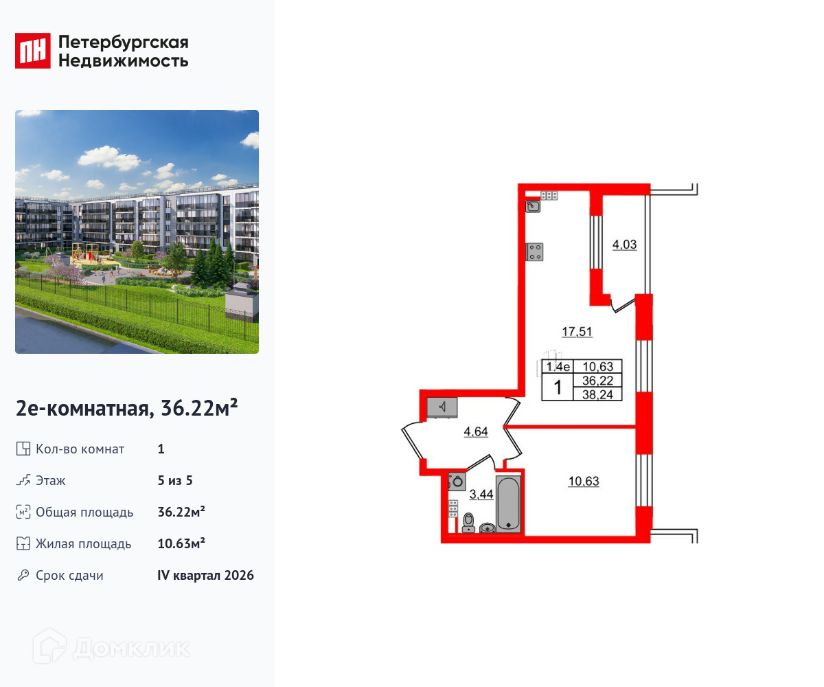 Предлагается 1-комнатная квартира в новом жилом комплексе "ЖК Парадный ансамбль" 🏢
