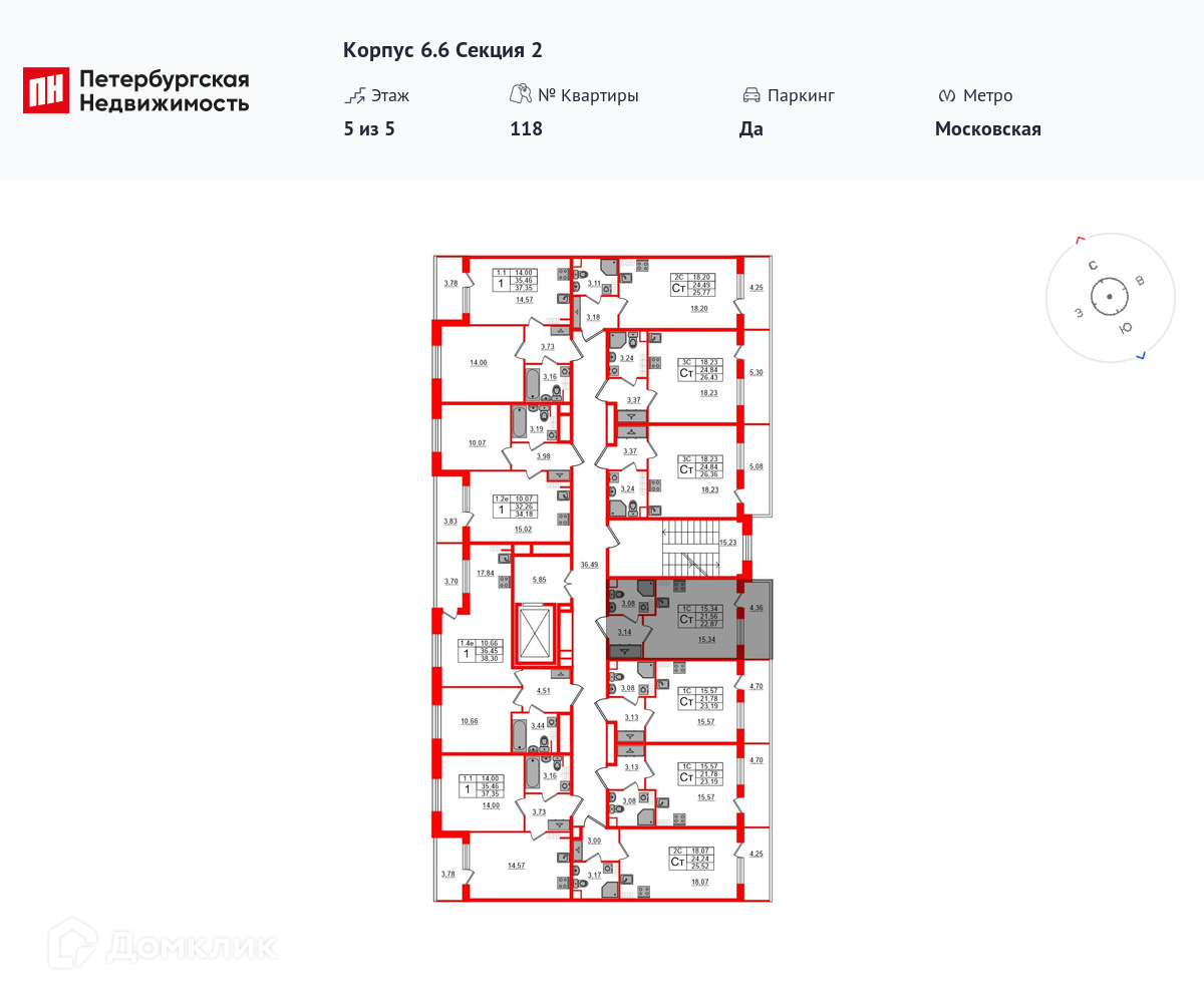 Квартира расположена на 5-м этаже 6-этажного дома.