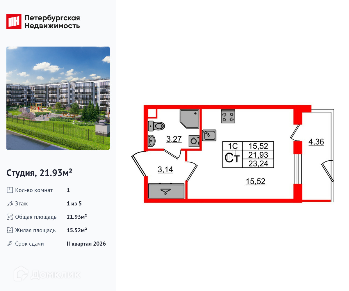 Предлагается Студия в новом жилом комплексе "ЖК Парадный ансамбль" 🏢