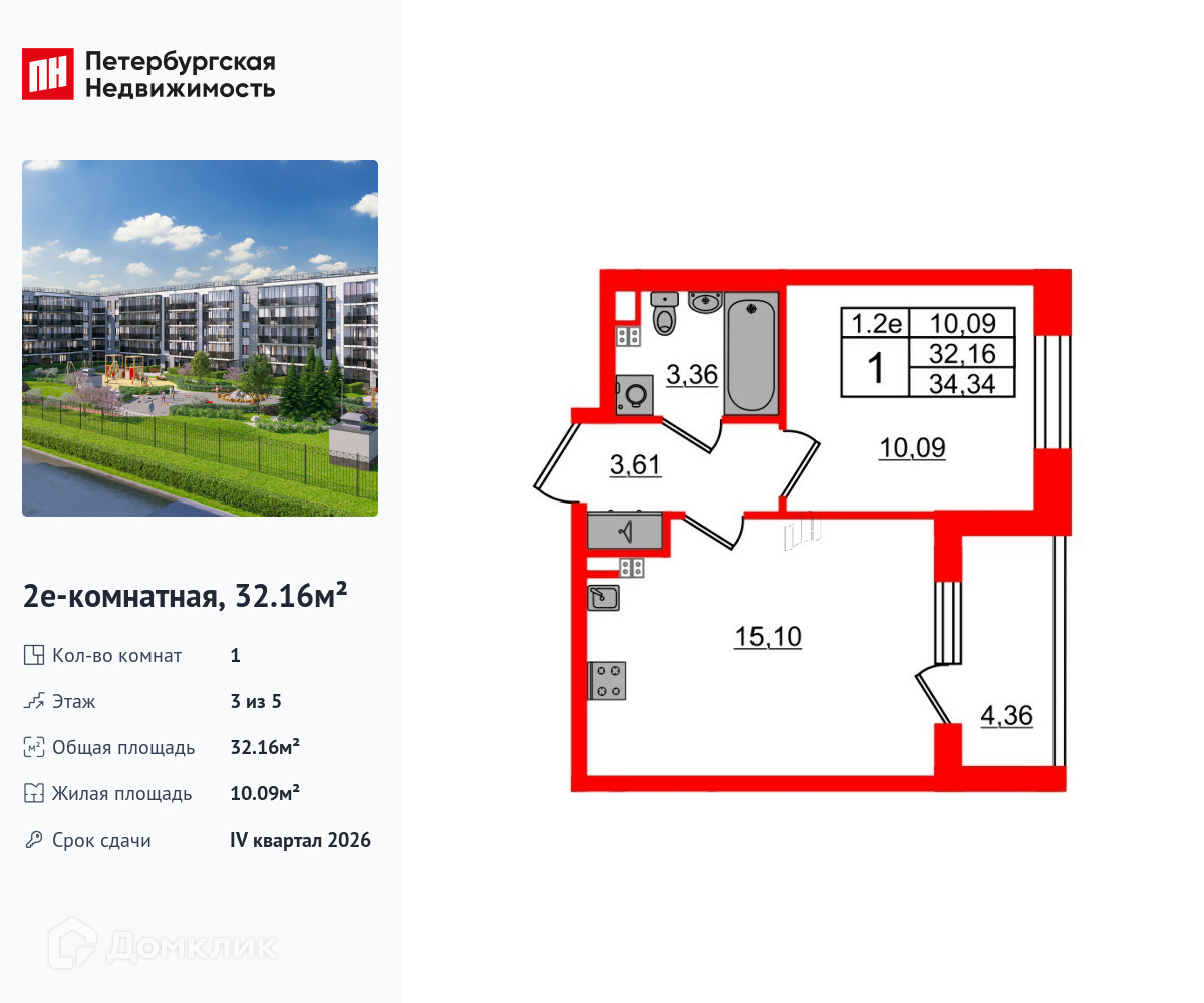 • Площадь - 32.16 м²