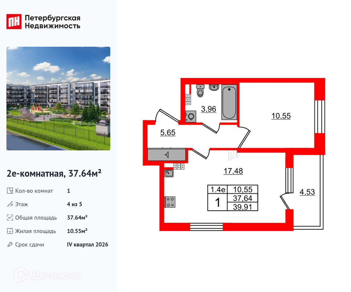 • Площадь - 37.64 м²