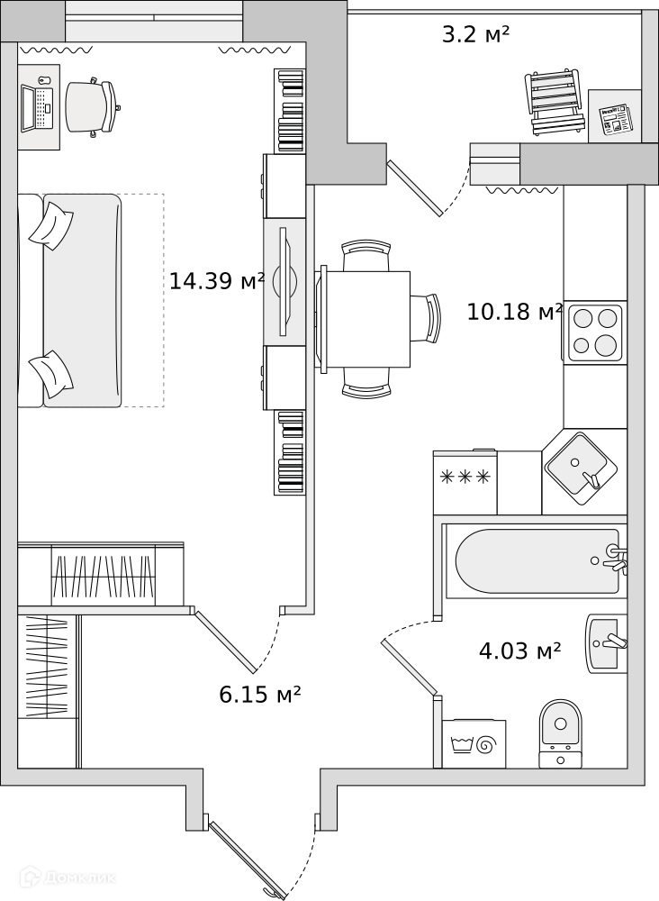 • Площадь - 34.9 м²