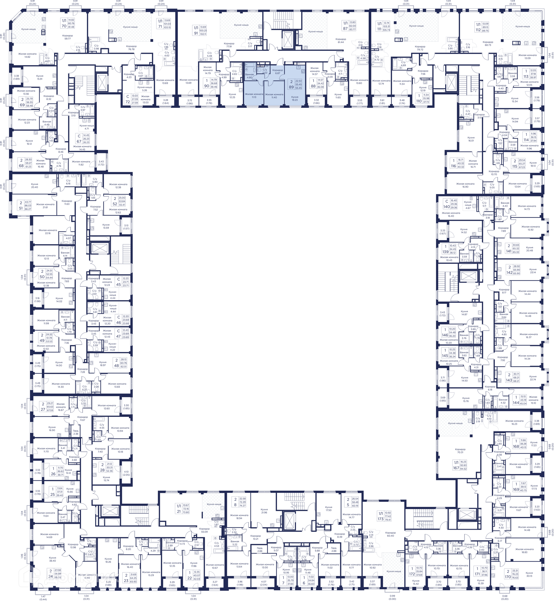 Площади квартир