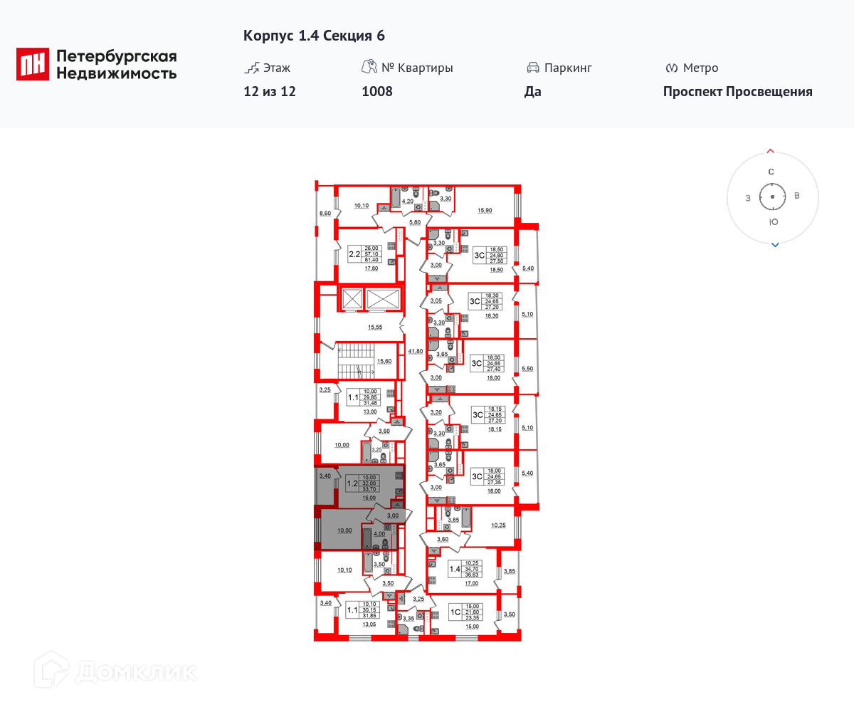 Площади квартир