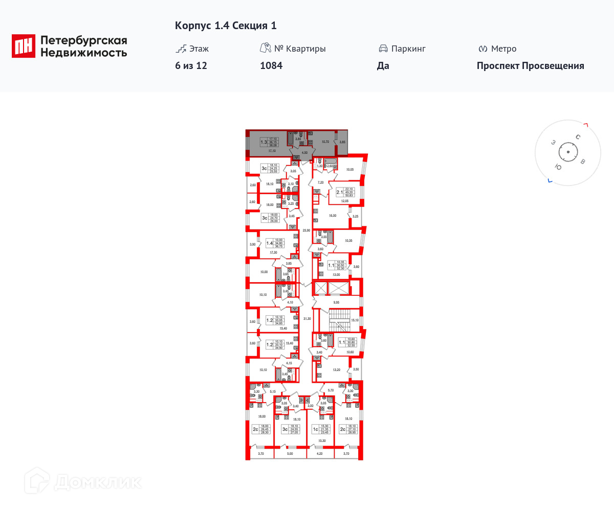 Площади квартир