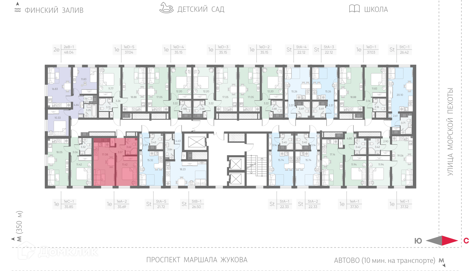 «Морская миля» – это новый проект компании «ЛСР», жилой комплекс комфорт-класса возводится у побережья реки Красненькая, в окружении водоемов, впадающих в Финский залив. В состав проекта войдет десять 25-этажных корпусов. Дома различаются по оттенкам, в облицовке фасадов используют качественный материал «Rockwool», обладающий высокими утепляющими свойствами. Симметричное расположение зданий и четкая пропорциональность формируют полноценный комфортный квартал, объединенный общей концепцией. Все общественные зоны квартала спроектированы по принципу безбарьерной среды, широкие двери в парадные позволят легко передвигаться с покупками, самокатом или велосипедом. Естественное освещение холлов в дневное время сменяется на мягкий свет от ламп по вечерам, для комфорта предусмотрены колясочные комнаты, диспетчерские зоны и кладовые помещения, где можно будет оставить бытовые принадлежности или сезонные вещи. Вдоль всего квартала будет проходить пешеходный бульвар с ландшафтным озеленением и скамьями для отдыха. В центральной части, огороженной от машин, появится детская площадка, зона отдыха с беседками, навесами и арт-объектами, уличный воркаут-стадион с тренажерами и футбольным полем, детский сад, школа и коммерческие точки с кофейнями, продуктовыми магазинами, салонами красоты и другими объектами инфраструктуры.Планировки квартир эргономичны и разнообразны, есть как небольшие классические студии, так и семейные квартиры с двумя отдельными спальнями. Лоты евроформата с большими кухнями-гостиными отлично подойдут для проведения семейных ужинов или мероприятий, в более просторных вариантах спроектировано несколько санузлов, а высота потолков достигает 2,55 м. На выбор предлагается 2 варианта чистовой отделки: светлая «Comfort Stone» и более темная «Comfort Wood». В отделку включена установка сантехники, проведение коммуникаций.В районе есть 3 станции метро: «Автово», «Кировский завод» и «Ленинский проспект», скоро на расстоянии 350 метров построят еще одну станцию «Юго-Западная» («Казаковская»). Для автомобилистов предусмотрен удобный выезд к ЗСД, от комплекса можно легко добраться до центра Санкт-Петербурга, аэропорта «Пулково» или живописного Петергофа. «Морская миля» строится в развитом Красносельском районе, в ближайшей округе находятся развлекательные, спортивные и торговые центры, ВУЗы, театр «Левендаль», музей Анны Ахматовой «Серебряный век» и музей Оранэлы. За 10 минут можно добраться до парков «Южно-Приморский», «Полежаевский» и «Александрино», неподалеку расположен город Петергоф, который славится своим заповедником у моря.Сделка оформляется с помощью эскроу-счета. Способы оплаты: 100% оплата, квартира в зачет, материнский капитал, субсидии, ипотека.
