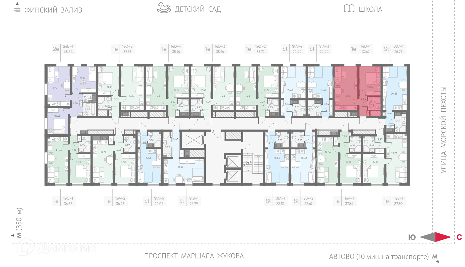 «Морская миля» – это новый проект компании «ЛСР», жилой комплекс комфорт-класса возводится у побережья реки Красненькая, в окружении водоемов, впадающих в Финский залив. В состав проекта войдет десять 25-этажных корпусов. Дома различаются по оттенкам, в облицовке фасадов используют качественный материал «Rockwool», обладающий высокими утепляющими свойствами. Симметричное расположение зданий и четкая пропорциональность формируют полноценный комфортный квартал, объединенный общей концепцией. Все общественные зоны квартала спроектированы по принципу безбарьерной среды, широкие двери в парадные позволят легко передвигаться с покупками, самокатом или велосипедом. Естественное освещение холлов в дневное время сменяется на мягкий свет от ламп по вечерам, для комфорта предусмотрены колясочные комнаты, диспетчерские зоны и кладовые помещения, где можно будет оставить бытовые принадлежности или сезонные вещи. Вдоль всего квартала будет проходить пешеходный бульвар с ландшафтным озеленением и скамьями для отдыха. В центральной части, огороженной от машин, появится детская площадка, зона отдыха с беседками, навесами и арт-объектами, уличный воркаут-стадион с тренажерами и футбольным полем, детский сад, школа и коммерческие точки с кофейнями, продуктовыми магазинами, салонами красоты и другими объектами инфраструктуры.Планировки квартир эргономичны и разнообразны, есть как небольшие классические студии, так и семейные квартиры с двумя отдельными спальнями. Лоты евроформата с большими кухнями-гостиными отлично подойдут для проведения семейных ужинов или мероприятий, в более просторных вариантах спроектировано несколько санузлов, а высота потолков достигает 2,55 м. На выбор предлагается 2 варианта чистовой отделки: светлая «Comfort Stone» и более темная «Comfort Wood». В отделку включена установка сантехники, проведение коммуникаций.В районе есть 3 станции метро: «Автово», «Кировский завод» и «Ленинский проспект», скоро на расстоянии 350 метров построят еще одну станцию «Юго-Западная» («Казаковская»). Для автомобилистов предусмотрен удобный выезд к ЗСД, от комплекса можно легко добраться до центра Санкт-Петербурга, аэропорта «Пулково» или живописного Петергофа. «Морская миля» строится в развитом Красносельском районе, в ближайшей округе находятся развлекательные, спортивные и торговые центры, ВУЗы, театр «Левендаль», музей Анны Ахматовой «Серебряный век» и музей Оранэлы. За 10 минут можно добраться до парков «Южно-Приморский», «Полежаевский» и «Александрино», неподалеку расположен город Петергоф, который славится своим заповедником у моря.Сделка оформляется с помощью эскроу-счета. Способы оплаты: 100% оплата, квартира в зачет, материнский капитал, субсидии, ипотека.