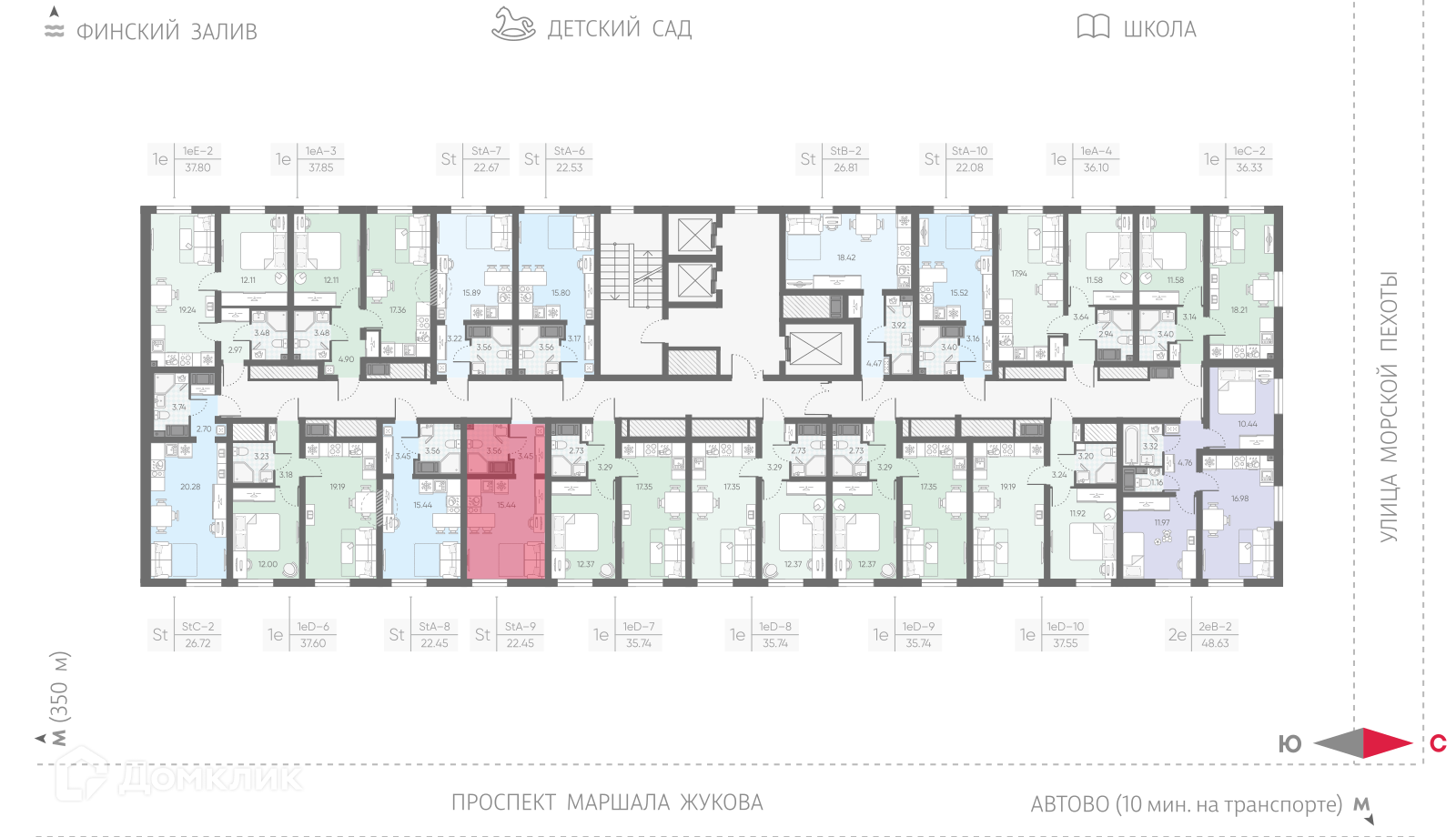«Морская миля» – это новый проект компании «ЛСР», жилой комплекс комфорт-класса возводится у побережья реки Красненькая, в окружении водоемов, впадающих в Финский залив. В состав проекта войдет десять 25-этажных корпусов. Дома различаются по оттенкам, в облицовке фасадов используют качественный материал «Rockwool», обладающий высокими утепляющими свойствами. Симметричное расположение зданий и четкая пропорциональность формируют полноценный комфортный квартал, объединенный общей концепцией. Все общественные зоны квартала спроектированы по принципу безбарьерной среды, широкие двери в парадные позволят легко передвигаться с покупками, самокатом или велосипедом. Естественное освещение холлов в дневное время сменяется на мягкий свет от ламп по вечерам, для комфорта предусмотрены колясочные комнаты, диспетчерские зоны и кладовые помещения, где можно будет оставить бытовые принадлежности или сезонные вещи. Вдоль всего квартала будет проходить пешеходный бульвар с ландшафтным озеленением и скамьями для отдыха. В центральной части, огороженной от машин, появится детская площадка, зона отдыха с беседками, навесами и арт-объектами, уличный воркаут-стадион с тренажерами и футбольным полем, детский сад, школа и коммерческие точки с кофейнями, продуктовыми магазинами, салонами красоты и другими объектами инфраструктуры.Планировки квартир эргономичны и разнообразны, есть как небольшие классические студии, так и семейные квартиры с двумя отдельными спальнями. Лоты евроформата с большими кухнями-гостиными отлично подойдут для проведения семейных ужинов или мероприятий, в более просторных вариантах спроектировано несколько санузлов, а высота потолков достигает 2,55 м. На выбор предлагается 2 варианта чистовой отделки: светлая «Comfort Stone» и более темная «Comfort Wood». В отделку включена установка сантехники, проведение коммуникаций.В районе есть 3 станции метро: «Автово», «Кировский завод» и «Ленинский проспект», скоро на расстоянии 350 метров построят еще одну станцию «Юго-Западная» («Казаковская»). Для автомобилистов предусмотрен удобный выезд к ЗСД, от комплекса можно легко добраться до центра Санкт-Петербурга, аэропорта «Пулково» или живописного Петергофа. «Морская миля» строится в развитом Красносельском районе, в ближайшей округе находятся развлекательные, спортивные и торговые центры, ВУЗы, театр «Левендаль», музей Анны Ахматовой «Серебряный век» и музей Оранэлы. За 10 минут можно добраться до парков «Южно-Приморский», «Полежаевский» и «Александрино», неподалеку расположен город Петергоф, который славится своим заповедником у моря.Сделка оформляется с помощью эскроу-счета. Способы оплаты: 100% оплата, квартира в зачет, материнский капитал, субсидии, ипотека.