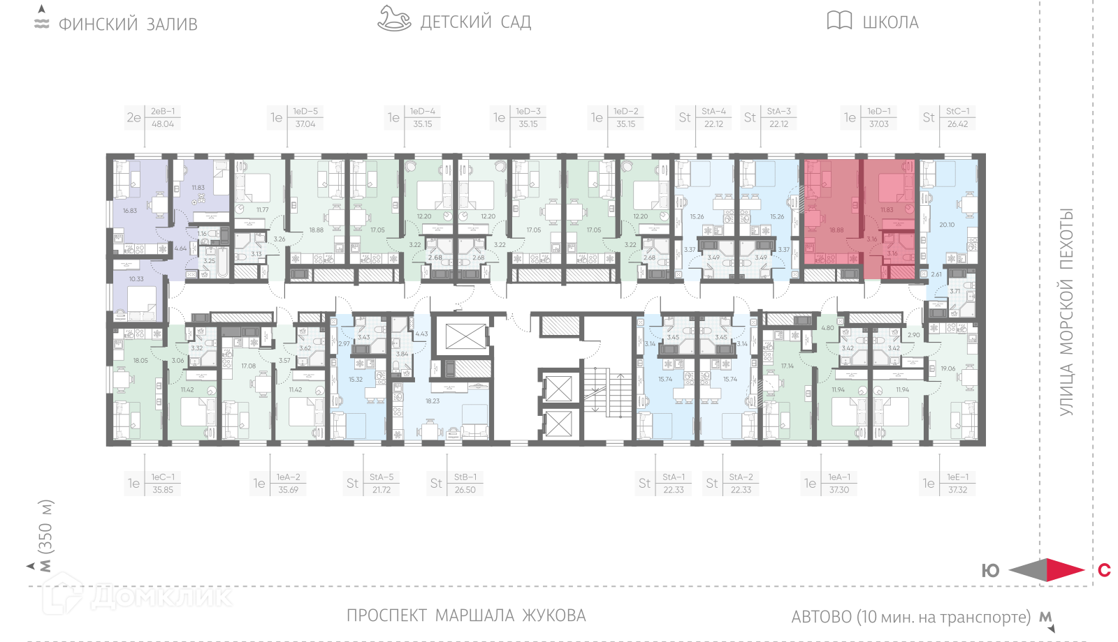 «Морская миля» – это новый проект компании «ЛСР», жилой комплекс комфорт-класса возводится у побережья реки Красненькая, в окружении водоемов, впадающих в Финский залив. В состав проекта войдет десять 25-этажных корпусов. Дома различаются по оттенкам, в облицовке фасадов используют качественный материал «Rockwool», обладающий высокими утепляющими свойствами. Симметричное расположение зданий и четкая пропорциональность формируют полноценный комфортный квартал, объединенный общей концепцией. Все общественные зоны квартала спроектированы по принципу безбарьерной среды, широкие двери в парадные позволят легко передвигаться с покупками, самокатом или велосипедом. Естественное освещение холлов в дневное время сменяется на мягкий свет от ламп по вечерам, для комфорта предусмотрены колясочные комнаты, диспетчерские зоны и кладовые помещения, где можно будет оставить бытовые принадлежности или сезонные вещи. Вдоль всего квартала будет проходить пешеходный бульвар с ландшафтным озеленением и скамьями для отдыха. В центральной части, огороженной от машин, появится детская площадка, зона отдыха с беседками, навесами и арт-объектами, уличный воркаут-стадион с тренажерами и футбольным полем, детский сад, школа и коммерческие точки с кофейнями, продуктовыми магазинами, салонами красоты и другими объектами инфраструктуры.Планировки квартир эргономичны и разнообразны, есть как небольшие классические студии, так и семейные квартиры с двумя отдельными спальнями. Лоты евроформата с большими кухнями-гостиными отлично подойдут для проведения семейных ужинов или мероприятий, в более просторных вариантах спроектировано несколько санузлов, а высота потолков достигает 2,55 м. На выбор предлагается 2 варианта чистовой отделки: светлая «Comfort Stone» и более темная «Comfort Wood». В отделку включена установка сантехники, проведение коммуникаций.В районе есть 3 станции метро: «Автово», «Кировский завод» и «Ленинский проспект», скоро на расстоянии 350 метров построят еще одну станцию «Юго-Западная» («Казаковская»). Для автомобилистов предусмотрен удобный выезд к ЗСД, от комплекса можно легко добраться до центра Санкт-Петербурга, аэропорта «Пулково» или живописного Петергофа. «Морская миля» строится в развитом Красносельском районе, в ближайшей округе находятся развлекательные, спортивные и торговые центры, ВУЗы, театр «Левендаль», музей Анны Ахматовой «Серебряный век» и музей Оранэлы. За 10 минут можно добраться до парков «Южно-Приморский», «Полежаевский» и «Александрино», неподалеку расположен город Петергоф, который славится своим заповедником у моря.Сделка оформляется с помощью эскроу-счета. Способы оплаты: 100% оплата, квартира в зачет, материнский капитал, субсидии, ипотека.