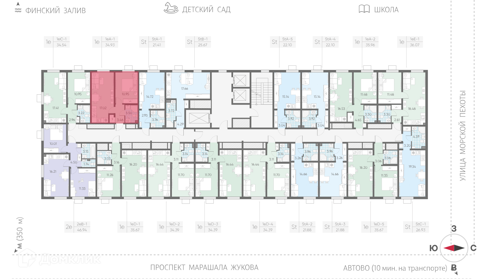«Морская миля» – это новый проект компании «ЛСР», жилой комплекс комфорт-класса возводится у побережья реки Красненькая, в окружении водоемов, впадающих в Финский залив. В состав проекта войдет десять 25-этажных корпусов. Дома различаются по оттенкам, в облицовке фасадов используют качественный материал «Rockwool», обладающий высокими утепляющими свойствами. Симметричное расположение зданий и четкая пропорциональность формируют полноценный комфортный квартал, объединенный общей концепцией. Все общественные зоны квартала спроектированы по принципу безбарьерной среды, широкие двери в парадные позволят легко передвигаться с покупками, самокатом или велосипедом. Естественное освещение холлов в дневное время сменяется на мягкий свет от ламп по вечерам, для комфорта предусмотрены колясочные комнаты, диспетчерские зоны и кладовые помещения, где можно будет оставить бытовые принадлежности или сезонные вещи. Вдоль всего квартала будет проходить пешеходный бульвар с ландшафтным озеленением и скамьями для отдыха. В центральной части, огороженной от машин, появится детская площадка, зона отдыха с беседками, навесами и арт-объектами, уличный воркаут-стадион с тренажерами и футбольным полем, детский сад, школа и коммерческие точки с кофейнями, продуктовыми магазинами, салонами красоты и другими объектами инфраструктуры.Планировки квартир эргономичны и разнообразны, есть как небольшие классические студии, так и семейные квартиры с двумя отдельными спальнями. Лоты евроформата с большими кухнями-гостиными отлично подойдут для проведения семейных ужинов или мероприятий, в более просторных вариантах спроектировано несколько санузлов, а высота потолков достигает 2,55 м. На выбор предлагается 2 варианта чистовой отделки: светлая «Comfort Stone» и более темная «Comfort Wood». В отделку включена установка сантехники, проведение коммуникаций.В районе есть 3 станции метро: «Автово», «Кировский завод» и «Ленинский проспект», скоро на расстоянии 350 метров построят еще одну станцию «Юго-Западная» («Казаковская»). Для автомобилистов предусмотрен удобный выезд к ЗСД, от комплекса можно легко добраться до центра Санкт-Петербурга, аэропорта «Пулково» или живописного Петергофа. «Морская миля» строится в развитом Красносельском районе, в ближайшей округе находятся развлекательные, спортивные и торговые центры, ВУЗы, театр «Левендаль», музей Анны Ахматовой «Серебряный век» и музей Оранэлы. За 10 минут можно добраться до парков «Южно-Приморский», «Полежаевский» и «Александрино», неподалеку расположен город Петергоф, который славится своим заповедником у моря.Сделка оформляется с помощью эскроу-счета. Способы оплаты: 100% оплата, квартира в зачет, материнский капитал, субсидии, ипотека.