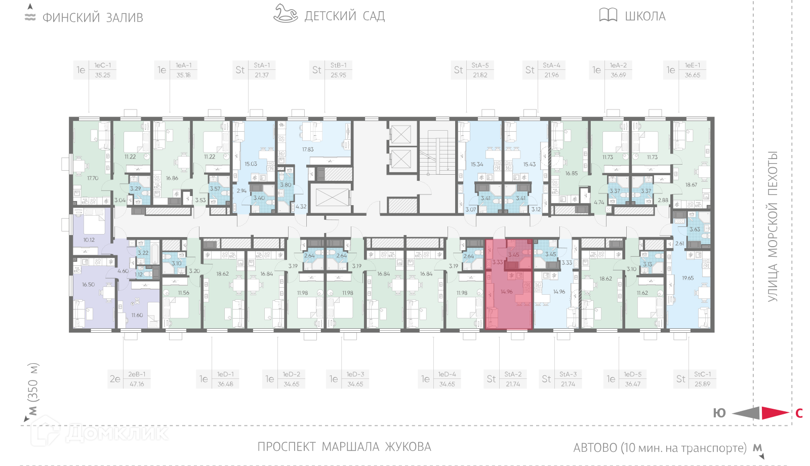 «Морская миля» – это новый проект компании «ЛСР», жилой комплекс комфорт-класса возводится у побережья реки Красненькая, в окружении водоемов, впадающих в Финский залив. В состав проекта войдет десять 25-этажных корпусов. Дома различаются по оттенкам, в облицовке фасадов используют качественный материал «Rockwool», обладающий высокими утепляющими свойствами. Симметричное расположение зданий и четкая пропорциональность формируют полноценный комфортный квартал, объединенный общей концепцией. Все общественные зоны квартала спроектированы по принципу безбарьерной среды, широкие двери в парадные позволят легко передвигаться с покупками, самокатом или велосипедом. Естественное освещение холлов в дневное время сменяется на мягкий свет от ламп по вечерам, для комфорта предусмотрены колясочные комнаты, диспетчерские зоны и кладовые помещения, где можно будет оставить бытовые принадлежности или сезонные вещи. Вдоль всего квартала будет проходить пешеходный бульвар с ландшафтным озеленением и скамьями для отдыха. В центральной части, огороженной от машин, появится детская площадка, зона отдыха с беседками, навесами и арт-объектами, уличный воркаут-стадион с тренажерами и футбольным полем, детский сад, школа и коммерческие точки с кофейнями, продуктовыми магазинами, салонами красоты и другими объектами инфраструктуры.Планировки квартир эргономичны и разнообразны, есть как небольшие классические студии, так и семейные квартиры с двумя отдельными спальнями. Лоты евроформата с большими кухнями-гостиными отлично подойдут для проведения семейных ужинов или мероприятий, в более просторных вариантах спроектировано несколько санузлов, а высота потолков достигает 2,55 м. На выбор предлагается 2 варианта чистовой отделки: светлая «Comfort Stone» и более темная «Comfort Wood». В отделку включена установка сантехники, проведение коммуникаций.В районе есть 3 станции метро: «Автово», «Кировский завод» и «Ленинский проспект», скоро на расстоянии 350 метров построят еще одну станцию «Юго-Западная» («Казаковская»). Для автомобилистов предусмотрен удобный выезд к ЗСД, от комплекса можно легко добраться до центра Санкт-Петербурга, аэропорта «Пулково» или живописного Петергофа. «Морская миля» строится в развитом Красносельском районе, в ближайшей округе находятся развлекательные, спортивные и торговые центры, ВУЗы, театр «Левендаль», музей Анны Ахматовой «Серебряный век» и музей Оранэлы. За 10 минут можно добраться до парков «Южно-Приморский», «Полежаевский» и «Александрино», неподалеку расположен город Петергоф, который славится своим заповедником у моря.Сделка оформляется с помощью эскроу-счета. Способы оплаты: 100% оплата, квартира в зачет, материнский капитал, субсидии, ипотека.