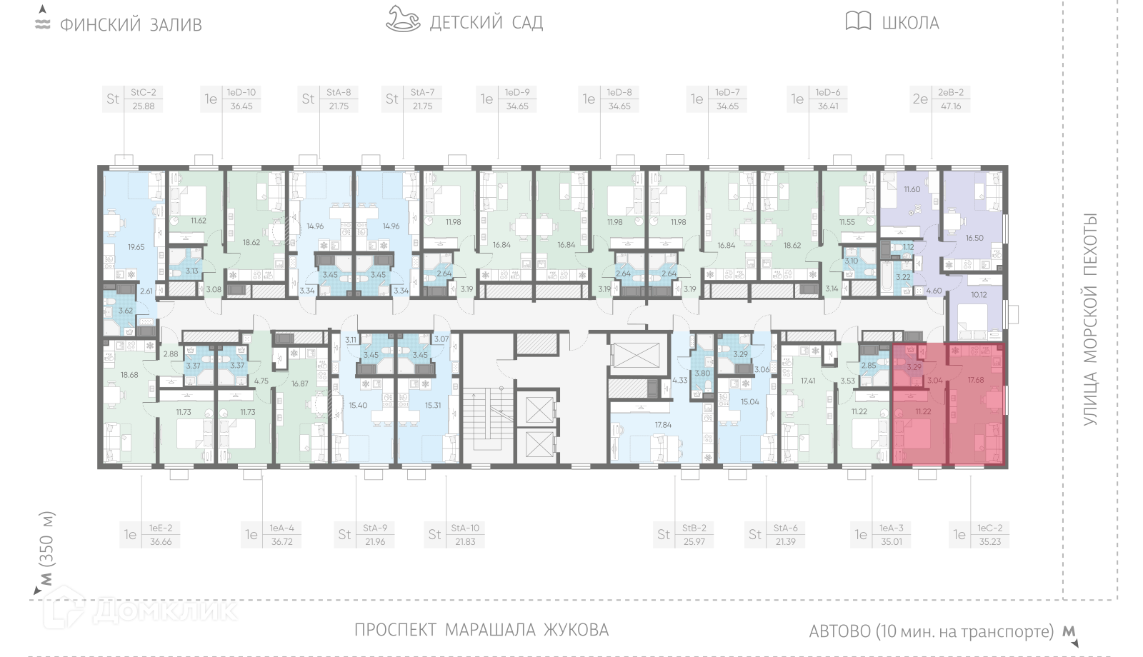 «Морская миля» – это новый проект компании «ЛСР», жилой комплекс комфорт-класса возводится у побережья реки Красненькая, в окружении водоемов, впадающих в Финский залив. В состав проекта войдет десять 25-этажных корпусов. Дома различаются по оттенкам, в облицовке фасадов используют качественный материал «Rockwool», обладающий высокими утепляющими свойствами. Симметричное расположение зданий и четкая пропорциональность формируют полноценный комфортный квартал, объединенный общей концепцией. Все общественные зоны квартала спроектированы по принципу безбарьерной среды, широкие двери в парадные позволят легко передвигаться с покупками, самокатом или велосипедом. Естественное освещение холлов в дневное время сменяется на мягкий свет от ламп по вечерам, для комфорта предусмотрены колясочные комнаты, диспетчерские зоны и кладовые помещения, где можно будет оставить бытовые принадлежности или сезонные вещи. Вдоль всего квартала будет проходить пешеходный бульвар с ландшафтным озеленением и скамьями для отдыха. В центральной части, огороженной от машин, появится детская площадка, зона отдыха с беседками, навесами и арт-объектами, уличный воркаут-стадион с тренажерами и футбольным полем, детский сад, школа и коммерческие точки с кофейнями, продуктовыми магазинами, салонами красоты и другими объектами инфраструктуры.Планировки квартир эргономичны и разнообразны, есть как небольшие классические студии, так и семейные квартиры с двумя отдельными спальнями. Лоты евроформата с большими кухнями-гостиными отлично подойдут для проведения семейных ужинов или мероприятий, в более просторных вариантах спроектировано несколько санузлов, а высота потолков достигает 2,55 м. На выбор предлагается 2 варианта чистовой отделки: светлая «Comfort Stone» и более темная «Comfort Wood». В отделку включена установка сантехники, проведение коммуникаций.В районе есть 3 станции метро: «Автово», «Кировский завод» и «Ленинский проспект», скоро на расстоянии 350 метров построят еще одну станцию «Юго-Западная» («Казаковская»). Для автомобилистов предусмотрен удобный выезд к ЗСД, от комплекса можно легко добраться до центра Санкт-Петербурга, аэропорта «Пулково» или живописного Петергофа. «Морская миля» строится в развитом Красносельском районе, в ближайшей округе находятся развлекательные, спортивные и торговые центры, ВУЗы, театр «Левендаль», музей Анны Ахматовой «Серебряный век» и музей Оранэлы. За 10 минут можно добраться до парков «Южно-Приморский», «Полежаевский» и «Александрино», неподалеку расположен город Петергоф, который славится своим заповедником у моря.Сделка оформляется с помощью эскроу-счета. Способы оплаты: 100% оплата, квартира в зачет, материнский капитал, субсидии, ипотека.