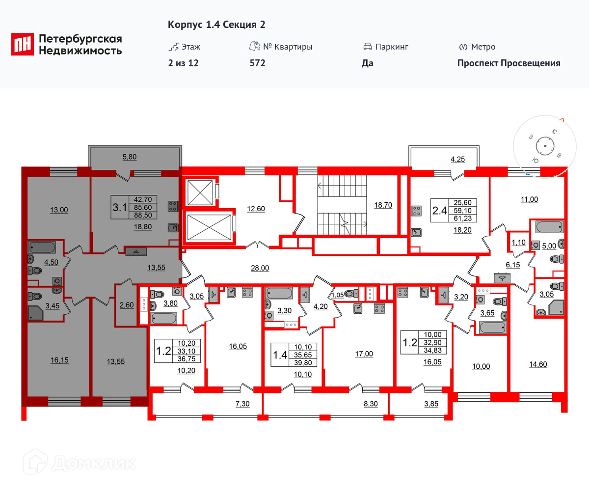 Площади квартир