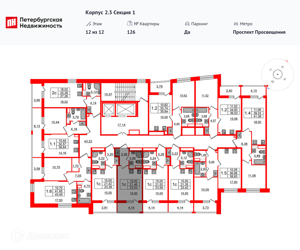 Планировка 1 комн. в ЖК Бионика Заповедная