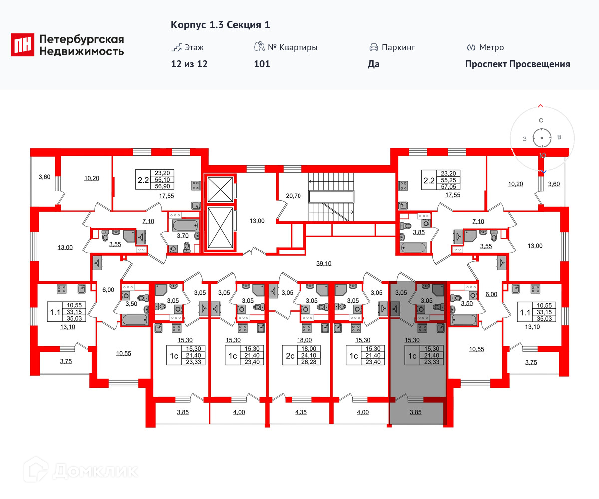 Площади квартир