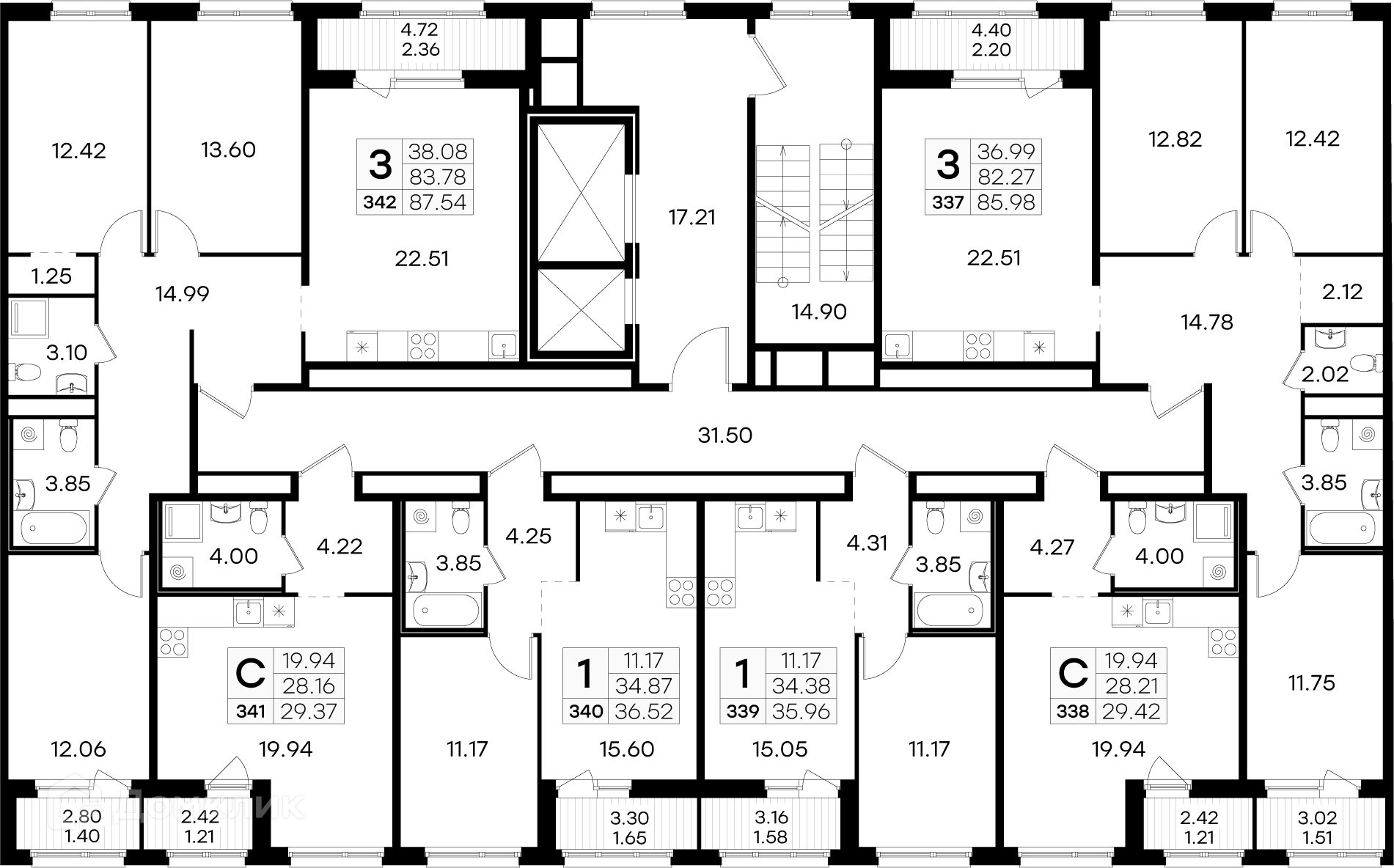 Площади квартир