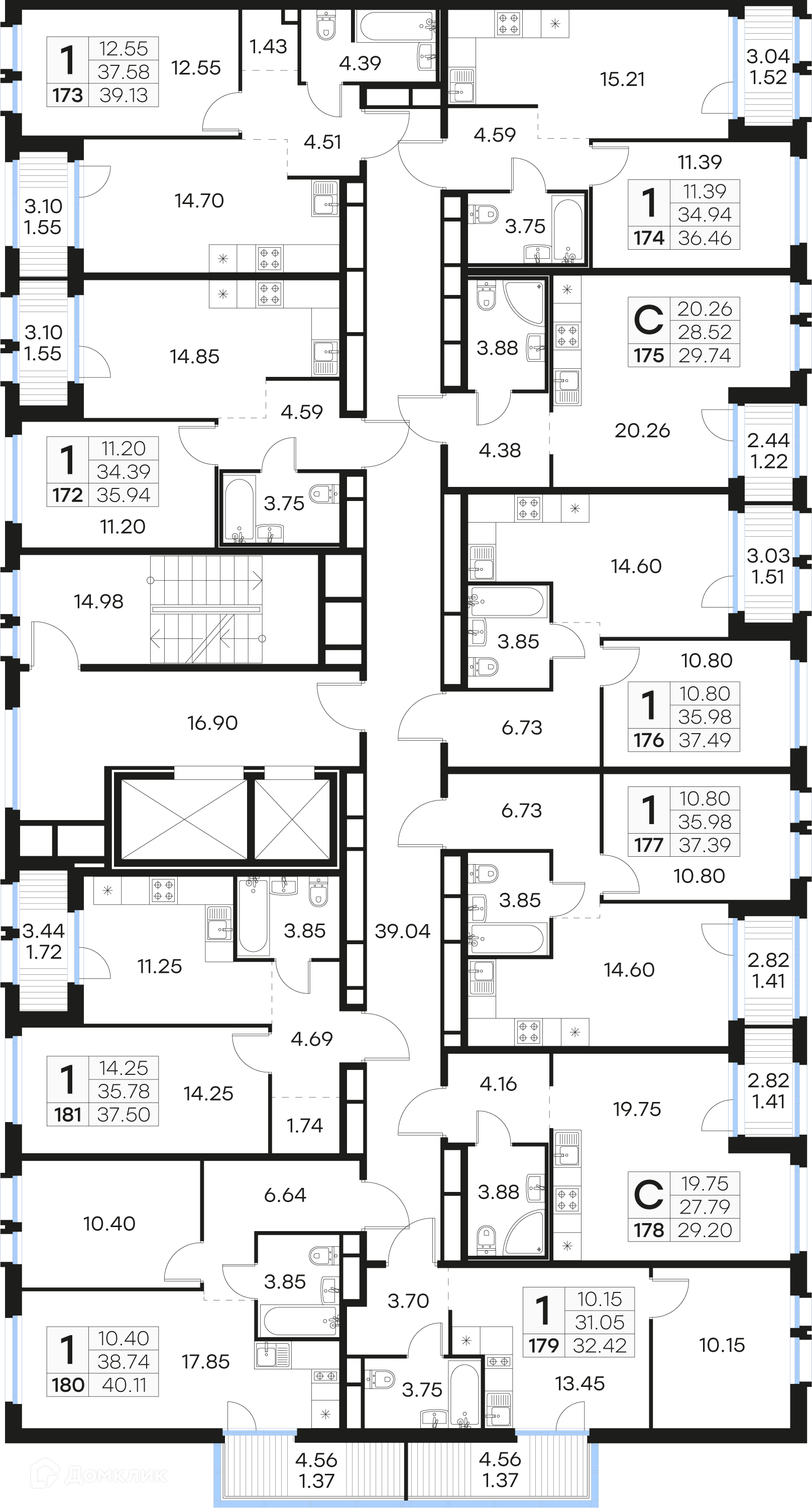 Площади квартир