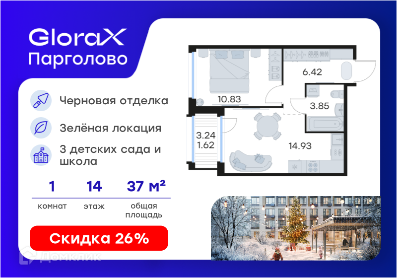 Предлагается 1-комнатная квартира в современном жилом комплексе "ЖК GloraX Парголово (Глоракс Парголово)" 🏢. Квартира расположена на 14-м этаже 16-этажного дома. Прекрасный выбор для инвестиций.