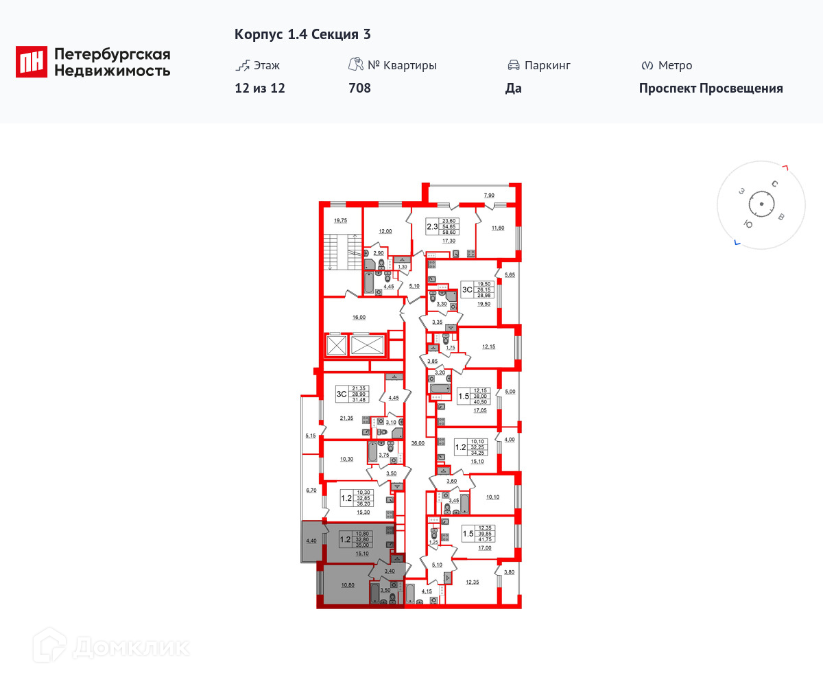 Площади квартир