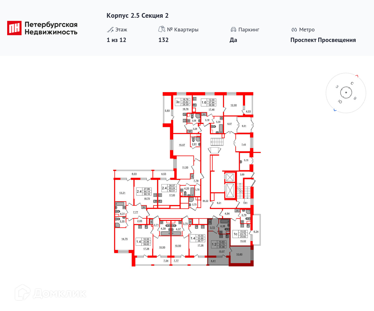 Площади квартир
