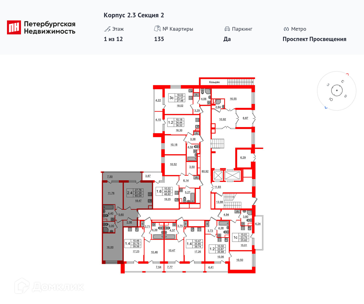 Площади квартир