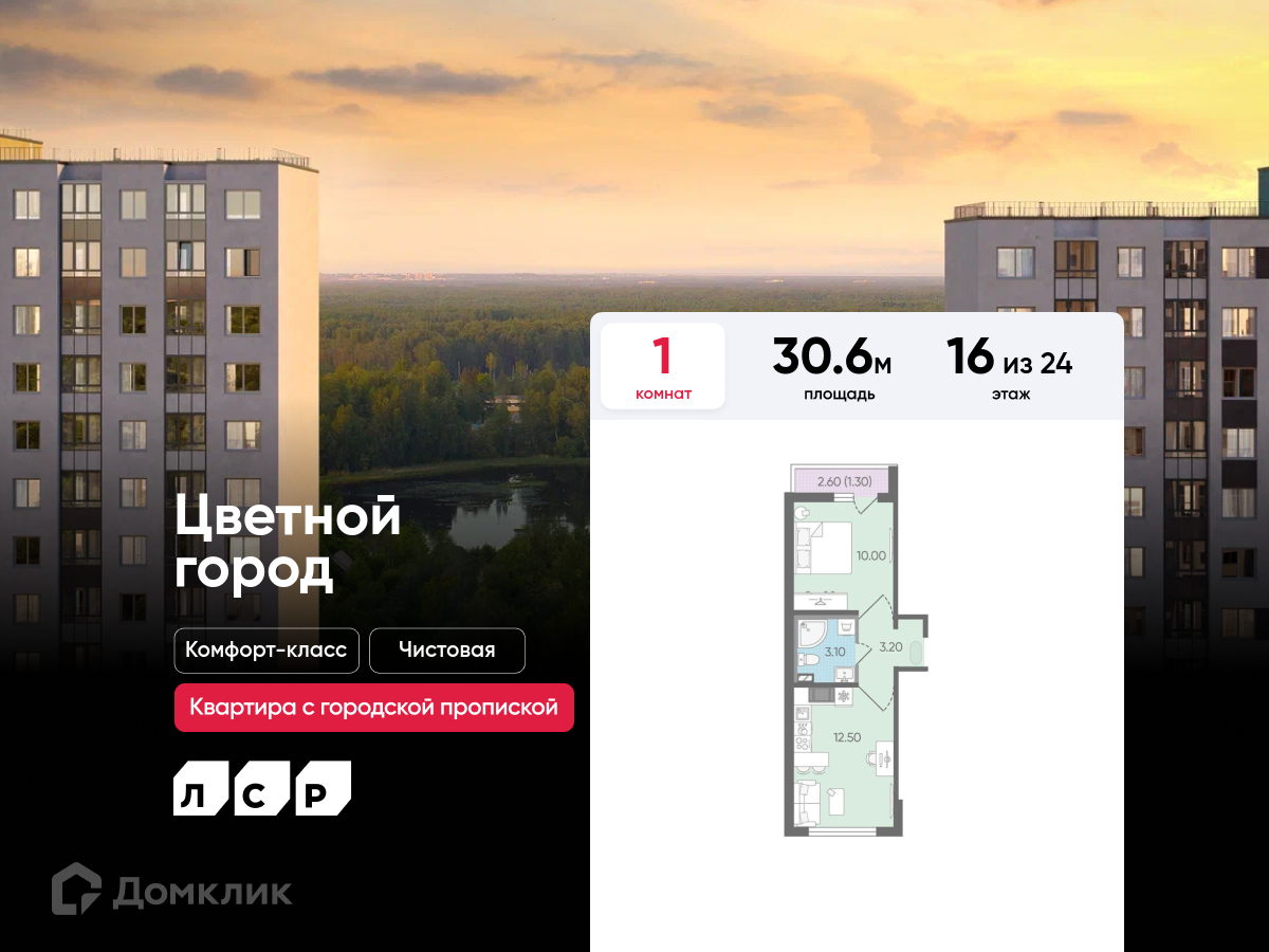 В продаже 1-комнатная квартира в новом жилом комплексе "ЖК Цветной город" 🏢.