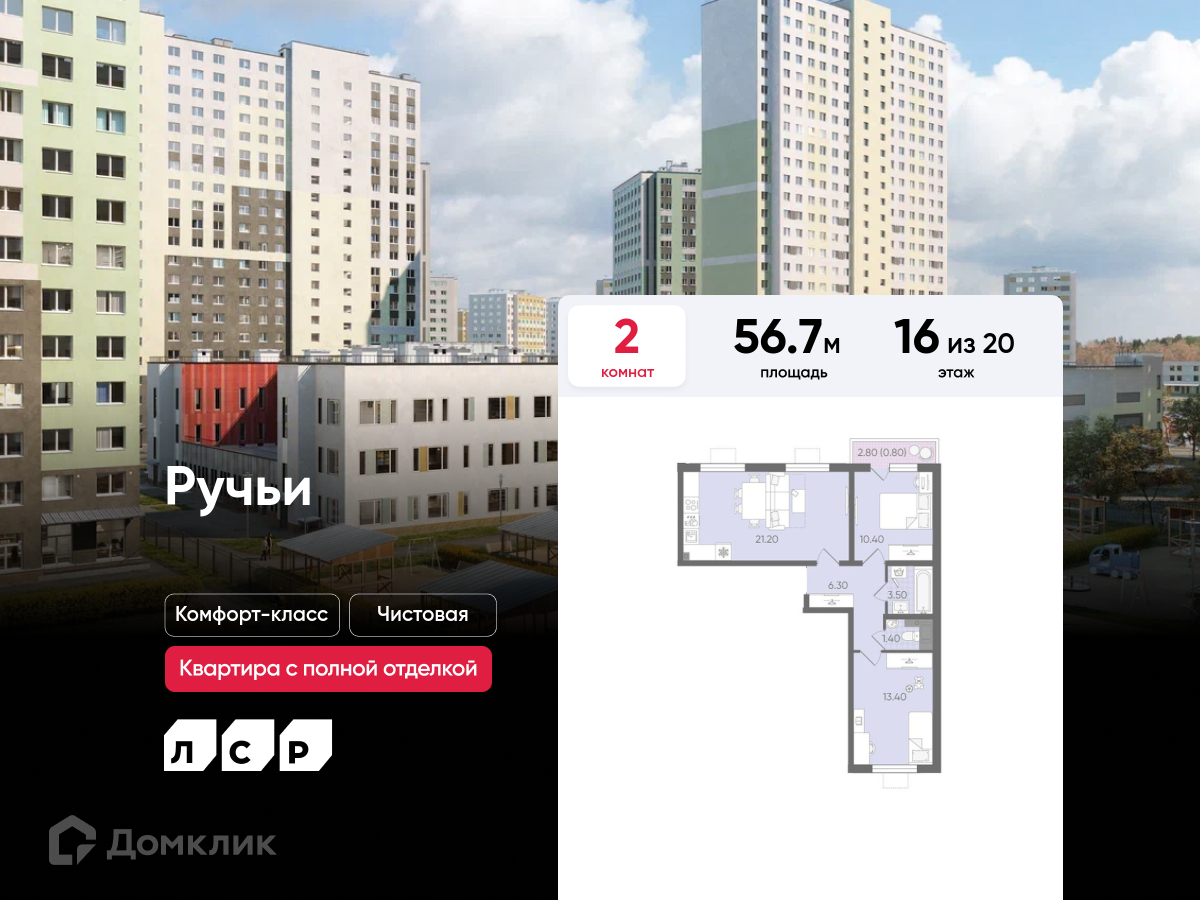 Продается 2-комнатная квартира в современном жилом комплексе "ЖК Ручьи" 🏢. Квартира расположена на 16-м этаже 20-этажного дома. Прекрасный выбор для семьи.