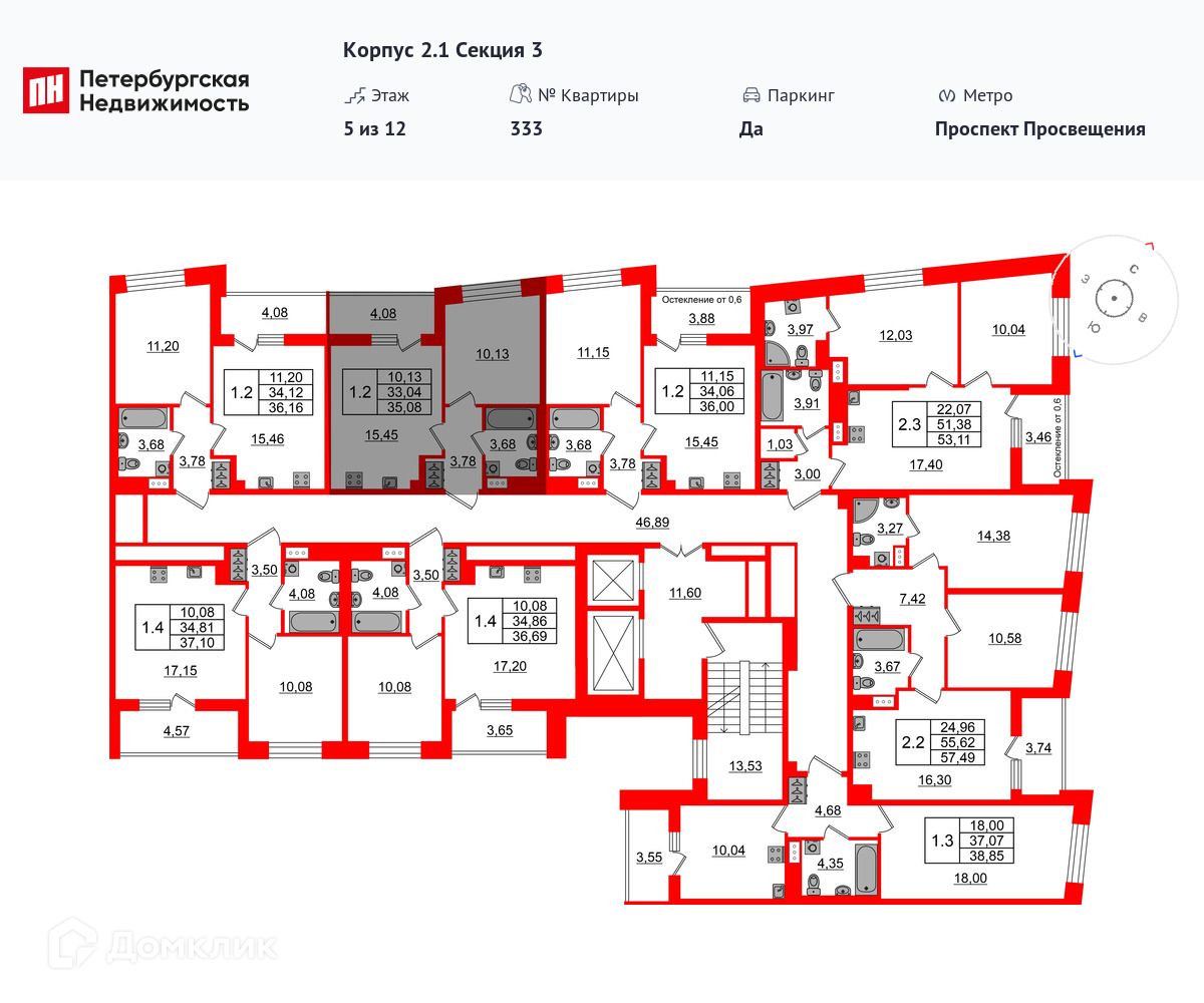 Площади квартир