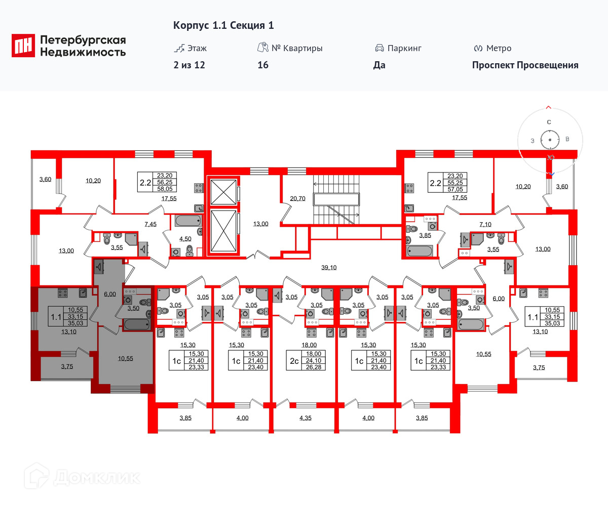 Площади квартир