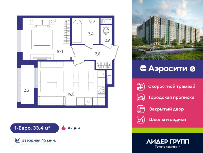 Комплекс возводится по кирпично-монолитной технологии. Особое место в проекте уделено его инженерным решениям. В доме предусмотрено лифтовое оборудование OTIS со спуском в паркинг, счетчики с автоматической передачей показаний, IP-домофония, коллекторная разводка отопления, а в квартирах будут установлены встроенные устройства приточного воздуха. Большая часть планировочных решений AEROCITY 6 по-настоящему уникальна. Первый дом проекта уже заселен. Строительство второй очереди завершено с большим опережением плановых сроков — дом вводится в эксплуатацию. Кроме городской прописки, новоселы AEROCITY получают полностью готовую комфортную и безопасную жилую среду. В квартале уже начал работу современный детский сад с двумя бассейнами, активно строятся две школы — средняя и начальная с детским садом. Возведена современная газовая котельная с подводящими сетями, началось строительство линии скоростного трамвая. ЖК AEROCITY 6 это: - городская прописка, - благоприятная экология, - светлые квартиры с увеличенными окнами, - подземный паркинг, - скоростной трамвай (срок запуска 2024г.) - рациональные планировочные решения, включая современные европланировки.