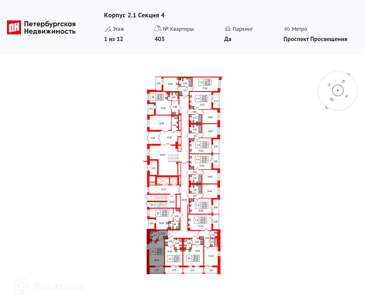 Площади квартир