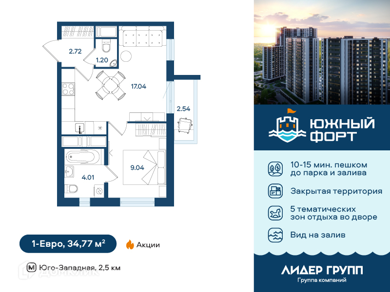 Доступна к покупке 1-комнатная квартира в современном жилом комплексе "ЖК Южный форт" 🏢. Квартира расположена на 19-м этаже 21-этажного дома. Прекрасный выбор для инвестиций.