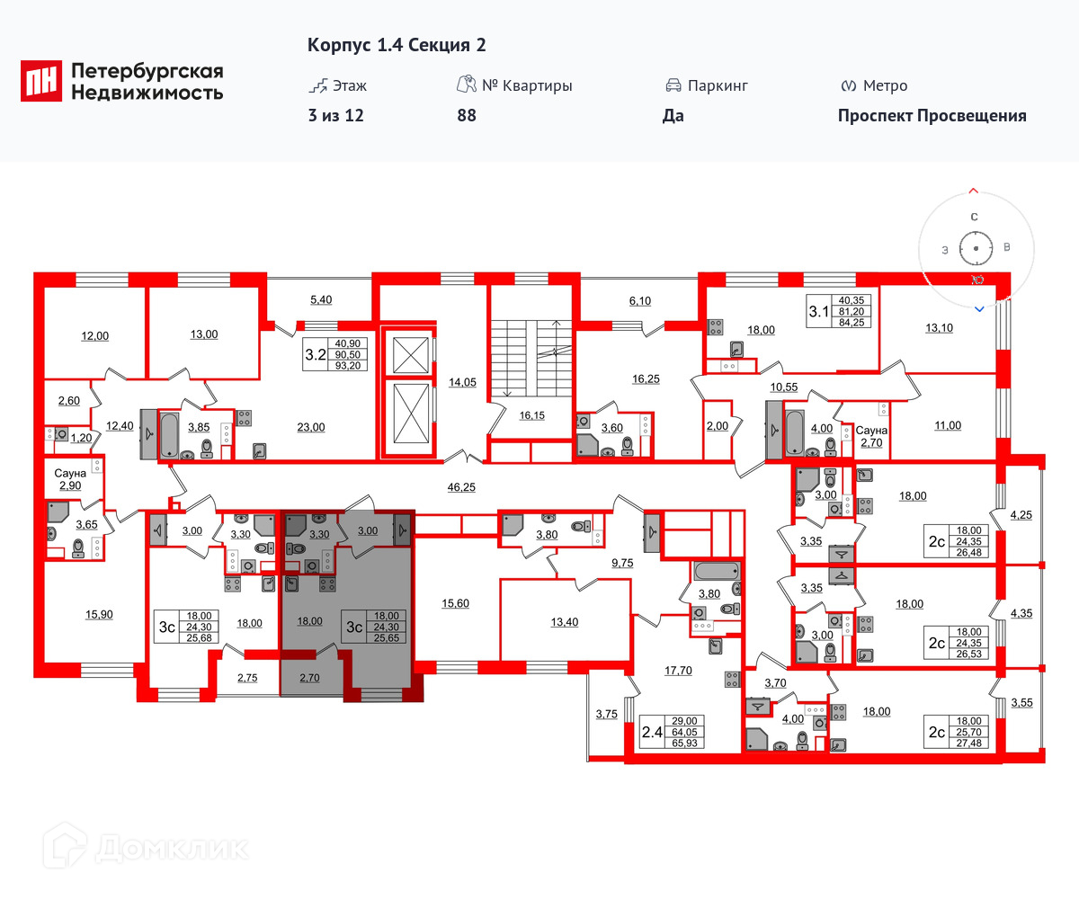 Площади квартир